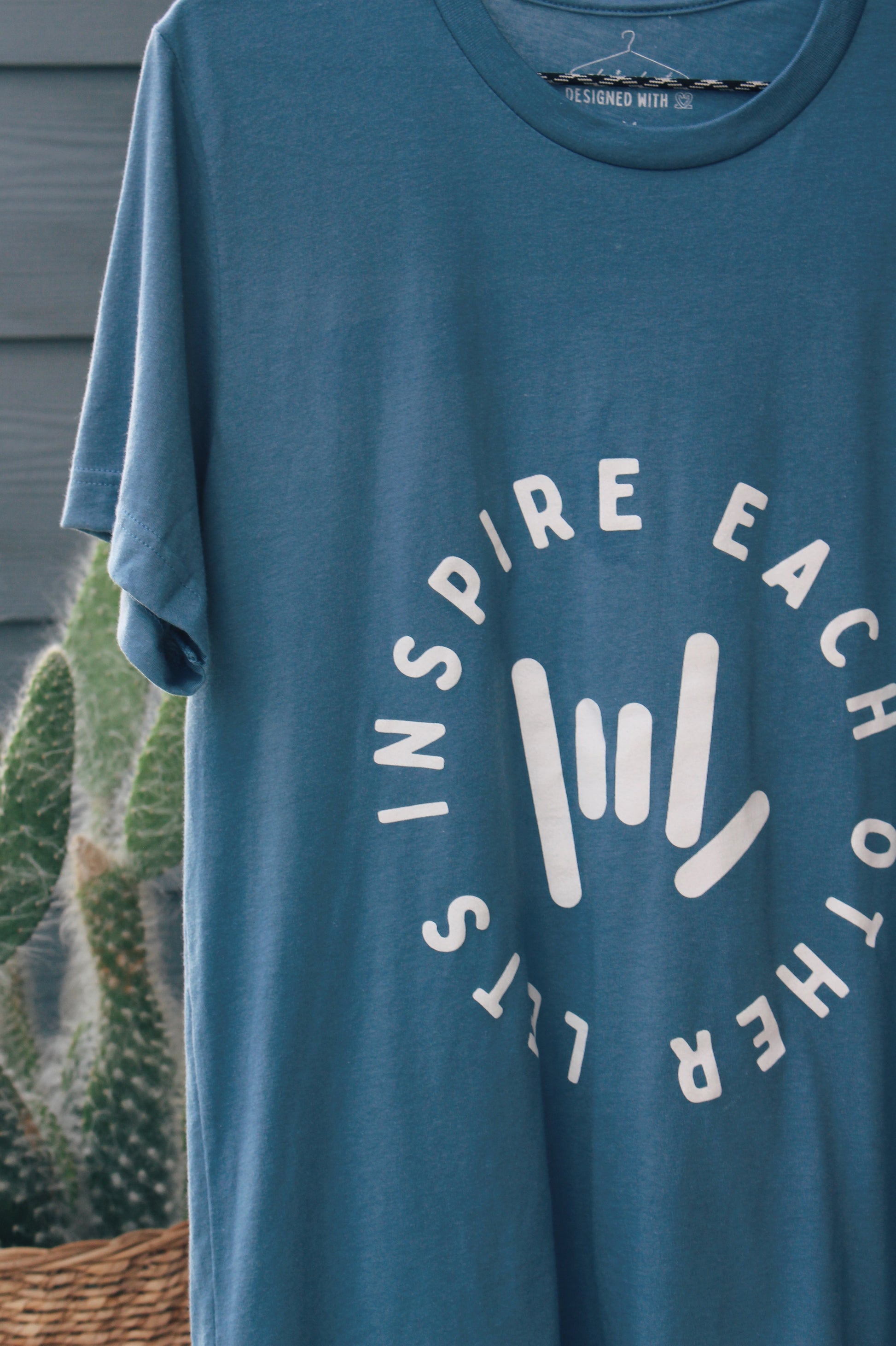 With our iconic 'I love you' sign and 'lets inspire each other' tagline, it's the perfect t-shirt to show some love. In a slate blue color looks great on everyone!