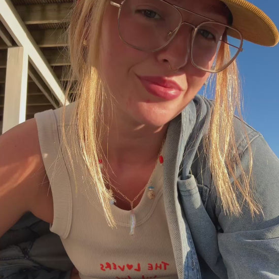 Our model rocks a size S, standing tall at 5'7.5" with measurements 33" bust, 24" waist, and 34" hips.